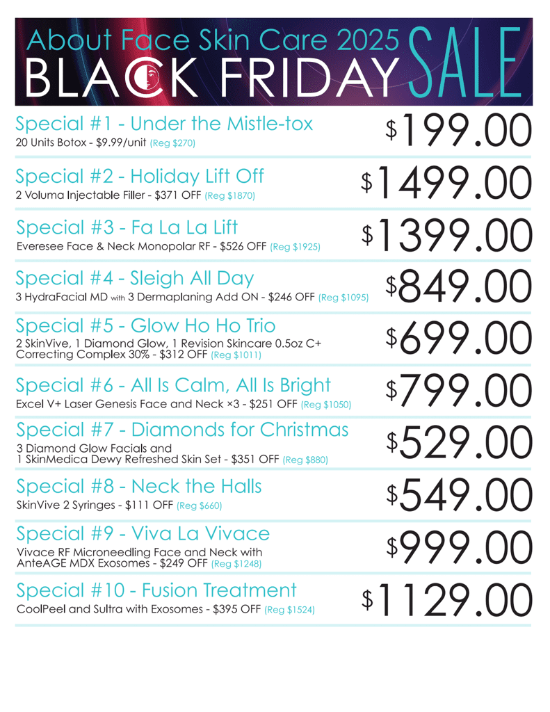 Limit one of each Black Friday Special per client. Specials are available while supplies last, and AFSC may withdraw any offer at any time. If a client is not a candidate for treatment, paid value may be used as credit toward another AFSC service. No refunds — all sales are final.